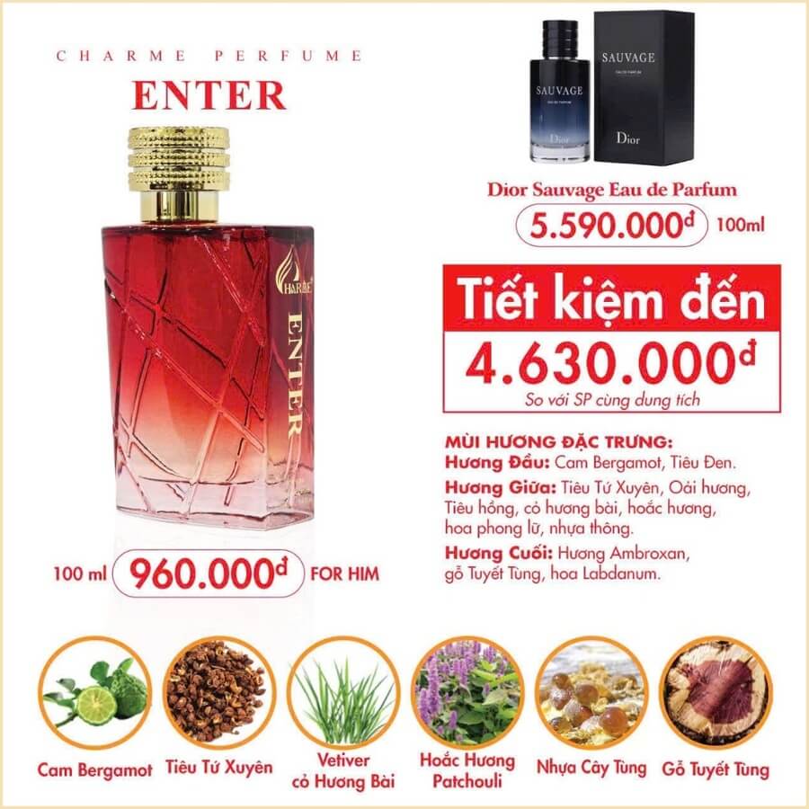 Nước Hoa Charme Enter 100ml - Hương Phóng Khoáng, Cuốn Hút Cho Phái Mạnh