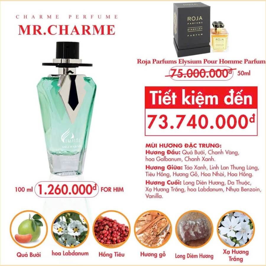 Nước Hoa Charme Nam Mr. Charme 100ml - Hương Lịch Lãm, Sang Trọng, Thu Hút Mọi Ánh Nhìn